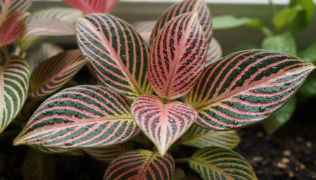 Leaves of a nerve plant, Fittonia albivenis.