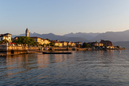 Cityscape of Baveno at lake maggiore in Italy during golden hour.