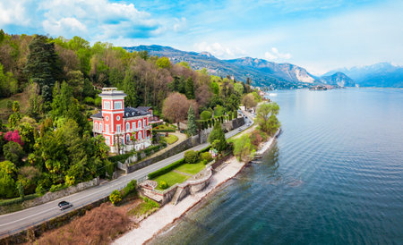 Stresa, Verbania, Italy - April 21, 2017: View of Island Fishermen; it is one of the Borromean Islands of Lake Maggiore in Piedmont of north Italy.