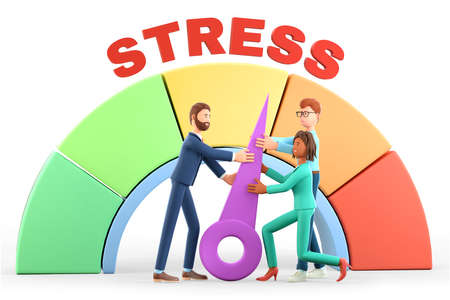 3D illustration of human characters reducing the pressure of problem in stress level concept. Emotional overload, employee frustrations at work. Business tension. Strong people resisting workload.