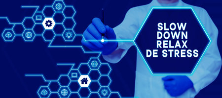Sign displaying Slow Down Relax De Stress. Internet Concept Have a break reduce stress levels rest calm