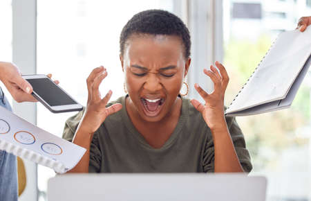 Im going to scream about this. a young businesswoman looking stressed in her office.