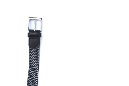 Rock style leather belt for men. Isolate genuine leather belt over black background.