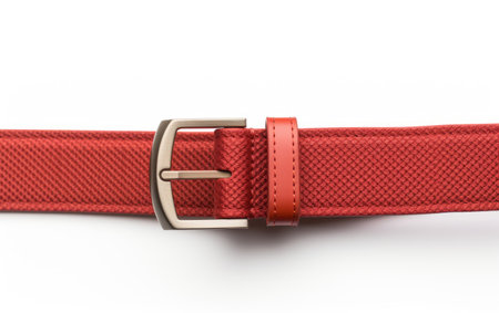 A white belt with a metal buckle separates the yellow and red areas of the image. Women's accessory. The concept of differentiation.
