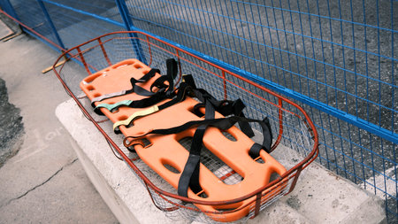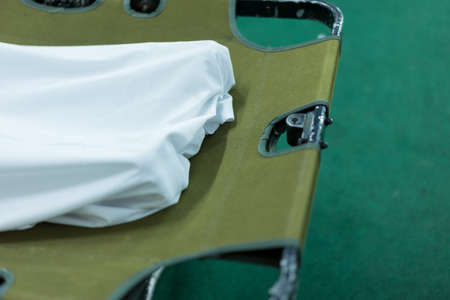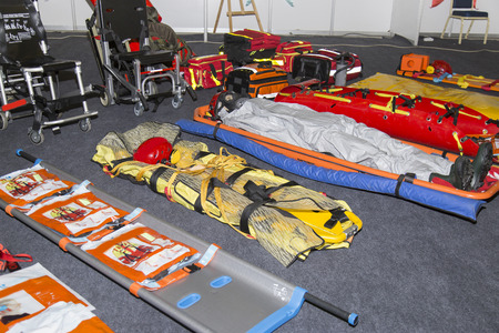 Stretcher bed. multi functional aluminium or stainless ambulance stretcher bed. Tool or equipment in hospital.