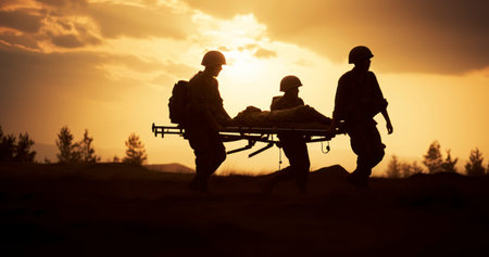 The Determined Silhouettes of Soldiers and Medics in a Rescue Operation