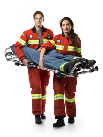 paramedic medical emergency doctor team working in action help first aid save people life at accident site outdoors