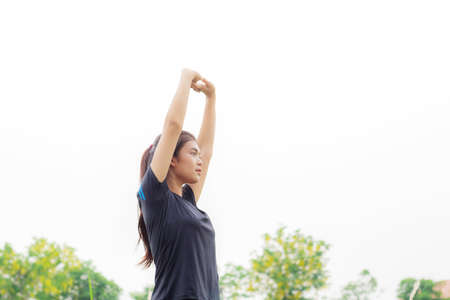 Asian woman is warm up, To make the muscles flexible Before going to jogging for good health and energymetabolism,Outdoors cross training workout. Healthcare concept