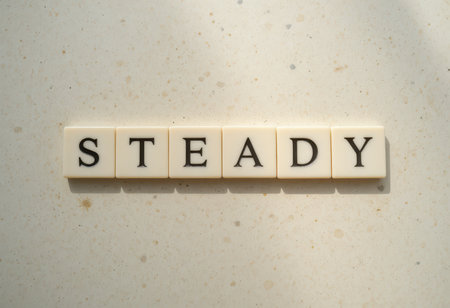 A minimalist image featuring letter tiles arranged to spell steady, perfect for conveying balance and calmness, suitable for inspiration or motivational themes.