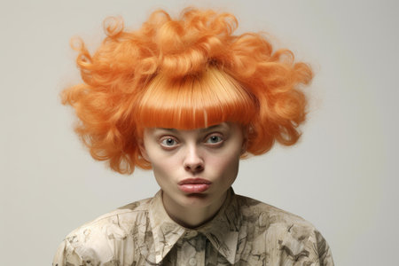 Portrait of a person with vibrant orange hair and a whimsically playful expression