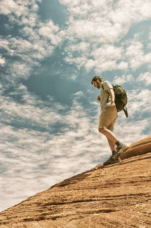 A male hiker hiking trail mountain, extreme sport outdoor.