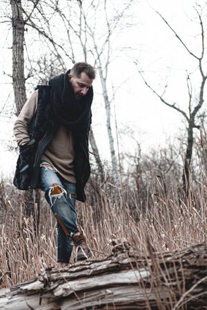 The man on the bridge walk autumn