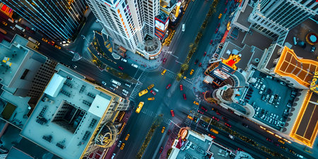 Bird's Eye View of the Lively Cityscape of Las Vegas, Nevada's Busy Streets. Concept Cityscape Photography, Aerial Views, Las Vegas, Nevada, Urban Landscapes