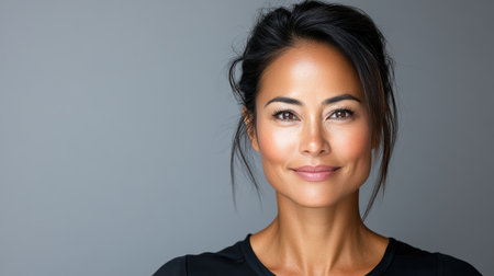 An Elegant Asian woman with warm smile and natural beauty, showcasing confidence