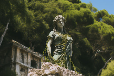 Enchanting Greek Statue Amid Lush Greenery: AR 3:2