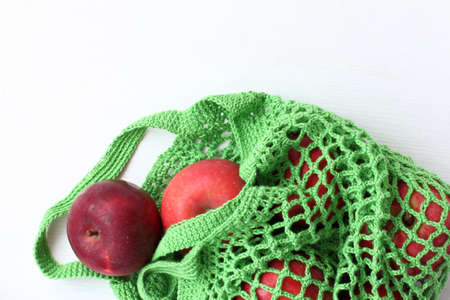 red apples in a green reusable eco-grid / fresh vitamins purchased in the store