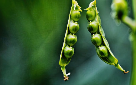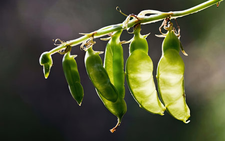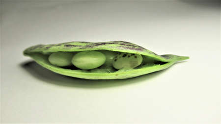 Macro shot. Sprouted beans in pod with different colors and growth.