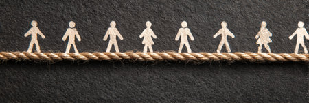 A lifeline made of string connects various people icons, symbolizing community and teamwork. This artistic design highlights the importance of connections.