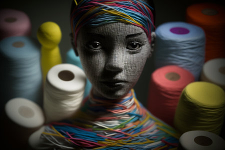 abstract emotional image of a female figure with obscured facial features, wrapped in flowing white strands. metaphor for confusion, fragility, and psychological pressure.