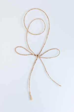 Natural thread brown rope texture background. Top view. Copy, empty space for text.