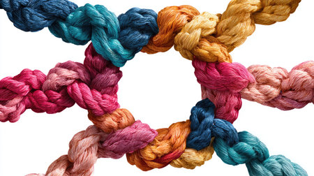 Colorful braided ropes on white background symbol of unity, diversity, and teamwork
