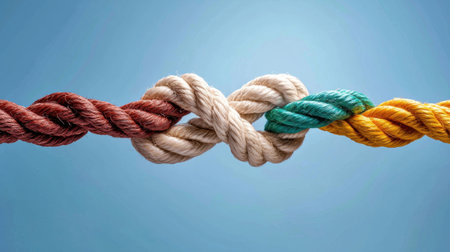 Tangled ropes forming a strong knot, representing unity, strength, and team collaboration