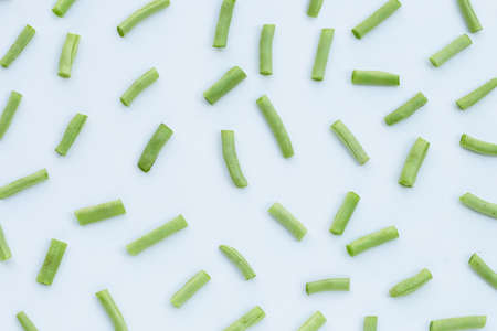 Green beans on white background. Top view