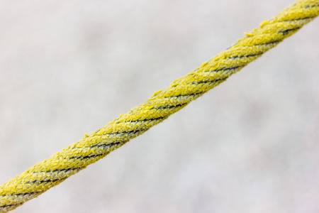 The yellow ship rope against the gray background. The twisted rope is random. top view. abstract background