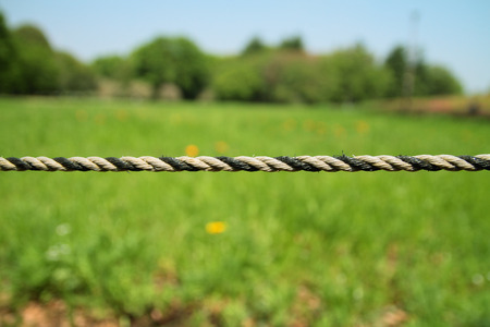 Synthetic rope crossing the image diagonally. Outdoor fitness training equipment.