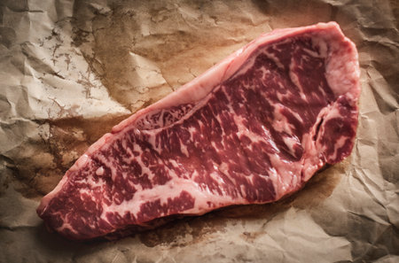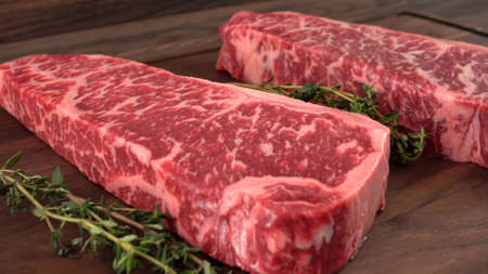Raw Japanese wagyu sirloin steak. Raw fresh marbled meat