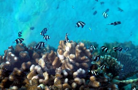Whitetail dascyllus (Dascyllus aruanus) in the Red Sea, Egypt.