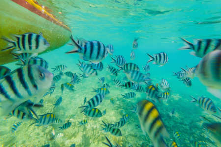 Tropical fish swimming in the coral reef. Underwater world.