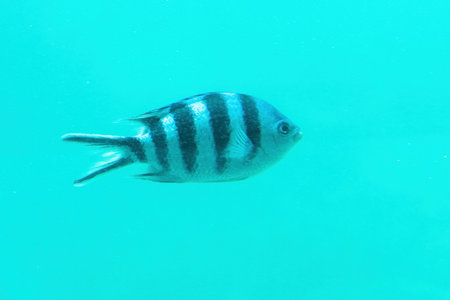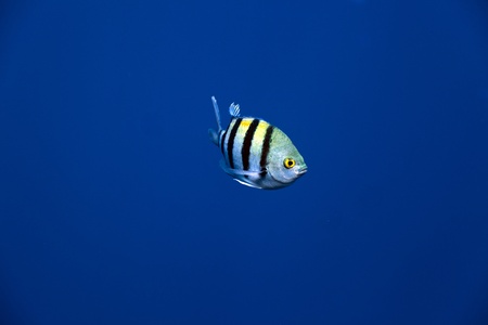 single indopazific sergeant fish in blue water in egypt