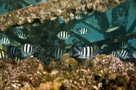 The Indo Pacific sergeant, Abudefduf vaigiensis, live in coral and rocky reefs