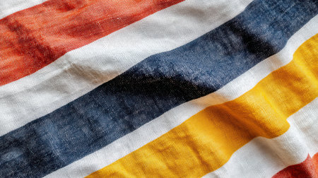Colorful striped background. Diagonal stripes pattern on white fabric.