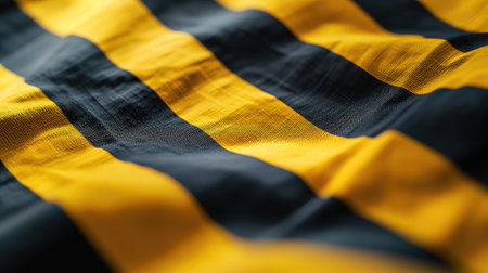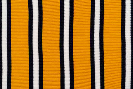 Detail view of decorative fabric texture with white, yellow, and black stripes