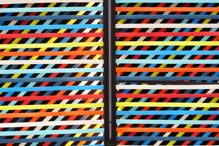 abstract colorful and multicolored background from rainbow ribbon wall or interior ceiling frame and wallpaper partition for creative art design and battens scene