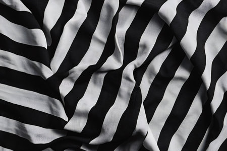 Close up of a black and white striped textile creating a beautiful abstract pattern with its folds and wrinkles