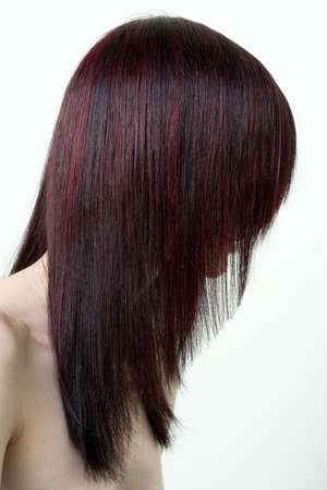 Red long hair on a white background. Red dyed hair.