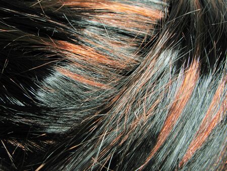 Closeup of black and orange hair as a background or texture.