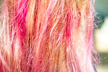 Multi-colored hair. Colored staining of the hair. Close up.