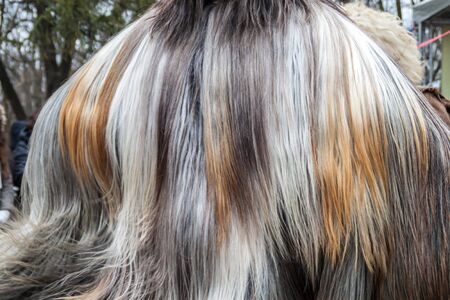 YAMBOL, BULGARIA - MARCH 08, 2015 - Kukerlandia - mask festival and masquerade games 08 March 2015. Bulgarian traditional dances and costumes called Kukeri.