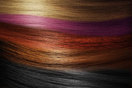 Close up of colorful hairs. Hair care concept