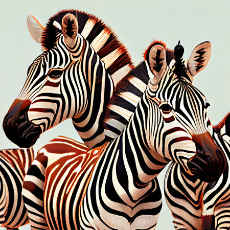 Three zebras posing on a colorful abstract background