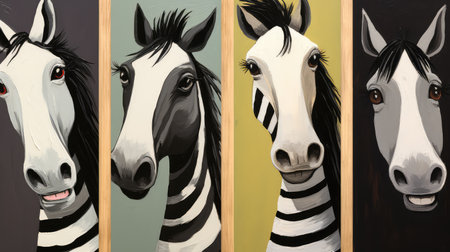 AI Generated. A zebra with a pink face is shown in a black background