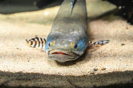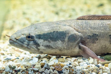 Detail of a mud-head fish in aquarium