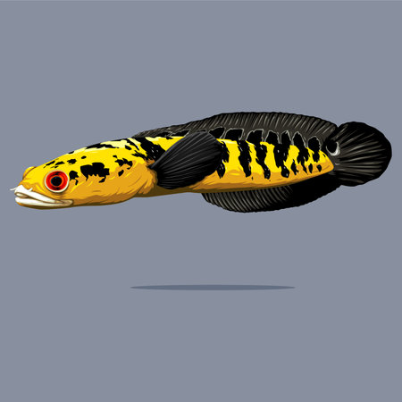 Vector illustration of channa marulioides yellow sentarum, detailed full body snakehead fish vector isolated. Design assets fit for your logo, mascot, or poster design.