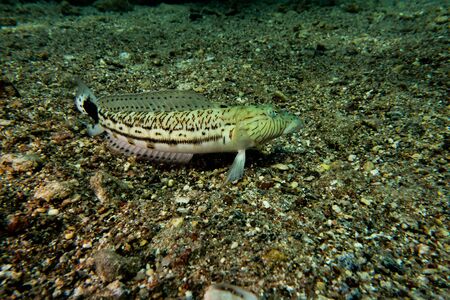 The fish Channa micropeltes swims in the sea. Underwater photography, diving.