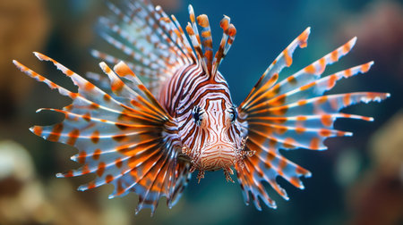 Striking Portrait of a Lionfish, Vibrant Colors, Underwater Elegance