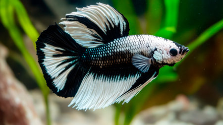 Captivating betta fish with flowing fins against a black background